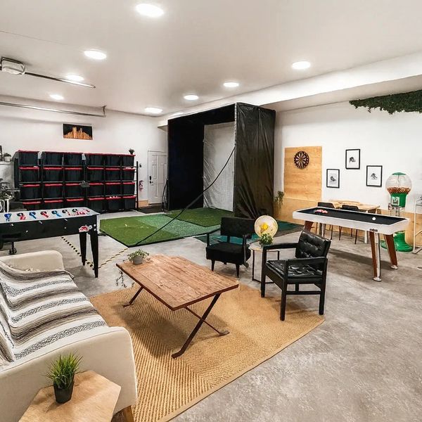 The garage talk area is where therapy takes a more hands-on, collaborative approach. This space fosters connection, allowing us to work shoulder to shoulder in a laid-back, interactive environment.